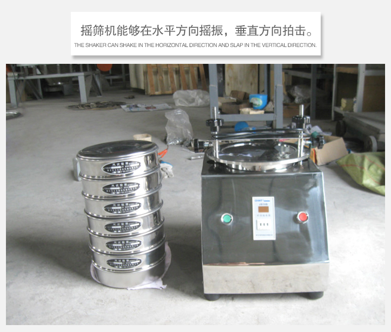 3、摇筛机,规范规定摇筛机能够在水平方向摇振,垂直方向拍击。摇振次数为100~200次/分钟,拍击次数为50~70次/分钟;