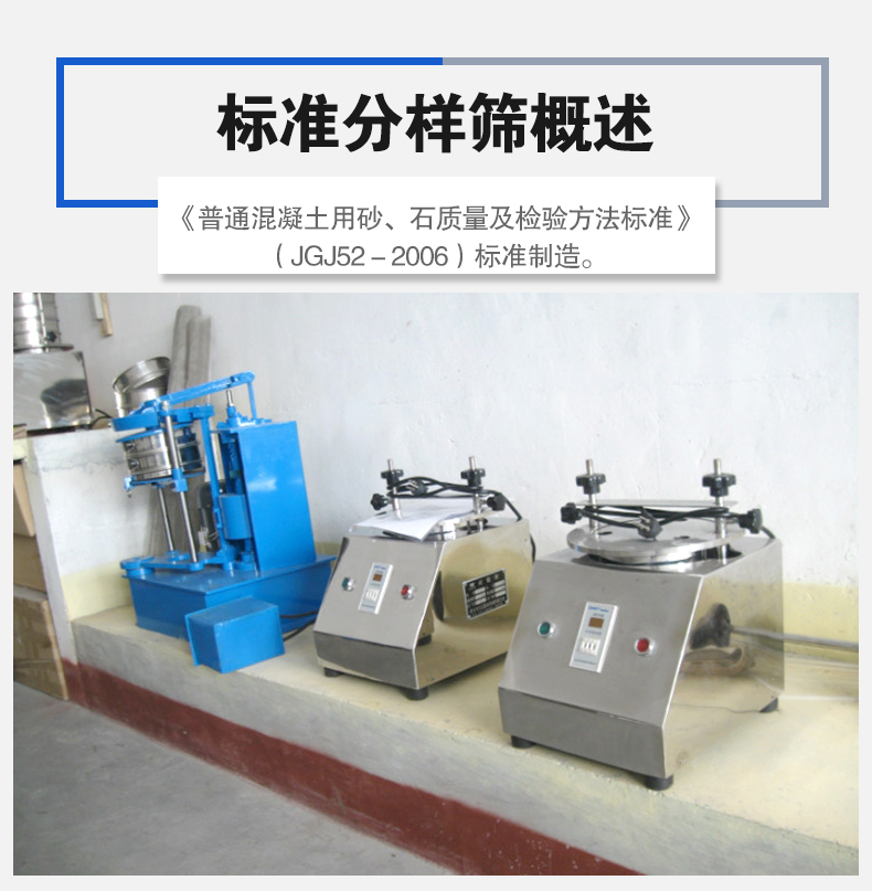 供应是按《普通混凝土用砂、石质量及检验方法标准》(JGJ52-2006),对颗粒性材料进行筛分试验用的符合标准形状和尺寸规格要求的系列样品筛。标准筛筛孔为正方形或圆形,适用于测定碎石或卵石中的含泥量。