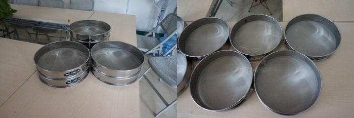 标准筛测定物料粒度组成所使用的一套标准筛具。是筛析的主要工 具。它是由一套筛孔尺寸大小有一定比例的、筛孔宽度和筛丝直径都按标准制造的直径为200mm的若干层圆形筛子所组成。有盖和底,可手工操作也安装在机上进行筛分。只要知道筛比和基筛这两个参数,就可以算出该系列标准套筛的各个筛子的筛孔尺寸。根据筛比和基筛筛孔尺寸的不同,分成各种标准筛制。